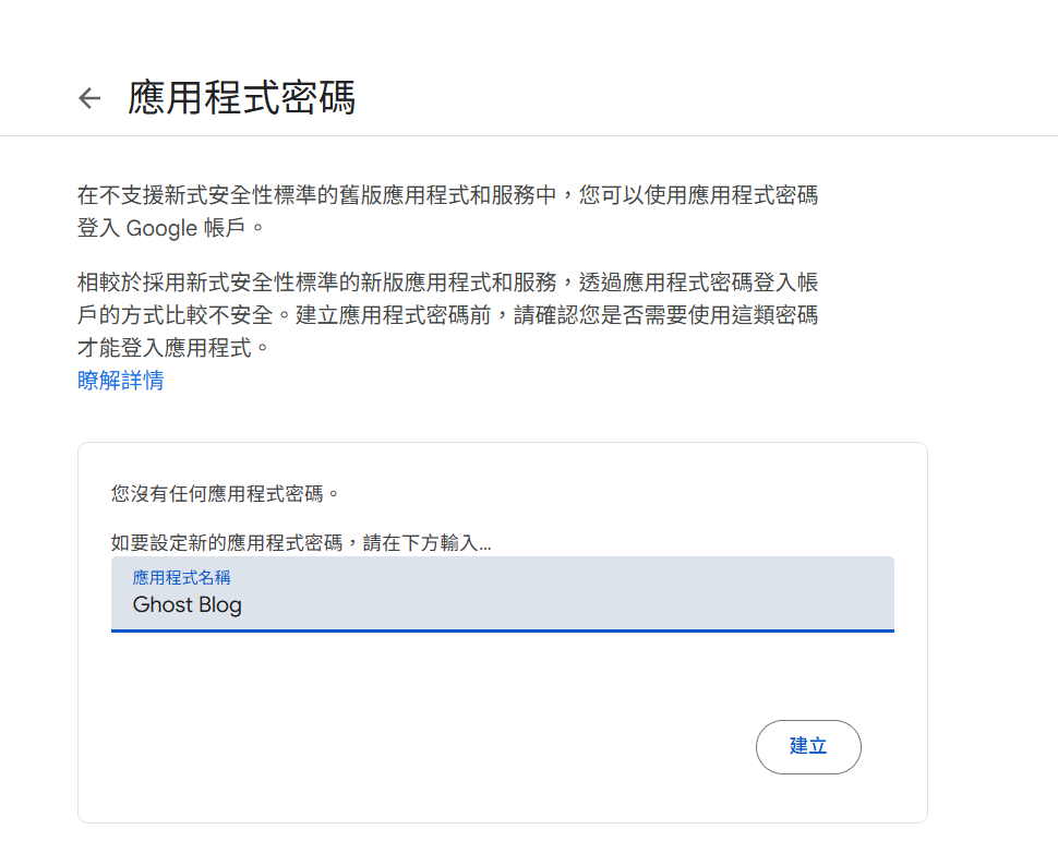 - 設定應用程式密碼 (https://myaccount.google.com/apppasswords)